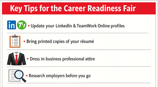 Howman emphasized the importance of preparing before the fair with online networking profiles, including LinkedIn and TeamWork Online.